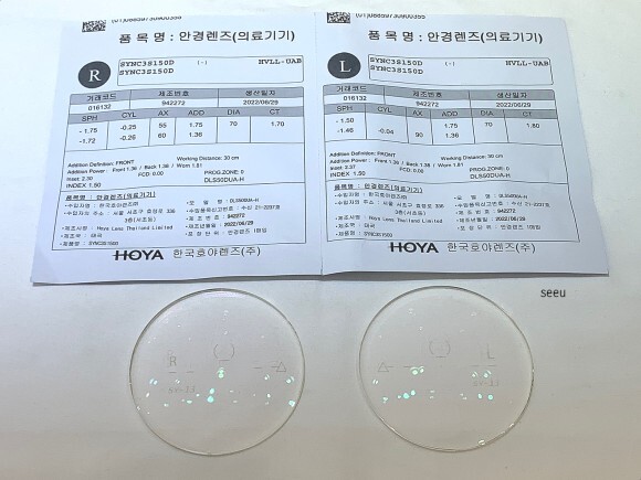 안경렌즈는 호야 싱크3 스탠다드 제품으로 Digital Eye Strain, DES 즉 디지털안정피로 를 확연하게 줄여주어 시생활에 피곤함을 완화 시켜주는 기능성렌즈 입니다. 타입이 존재하기 때문에 어린 학생부터 초기 노안까지 사용이 가능하기 때문에