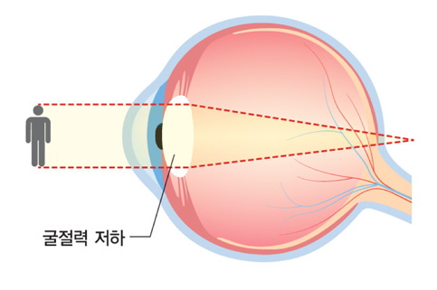 수정체에 주변근육에 노화로 인하여 조절이 잘 되지 않기 때문에 가까운 거리를 볼때 흐려보이고 침침해 지는 원인이 되는데요~ 이를 해결하기 위해선 나의 생활패턴